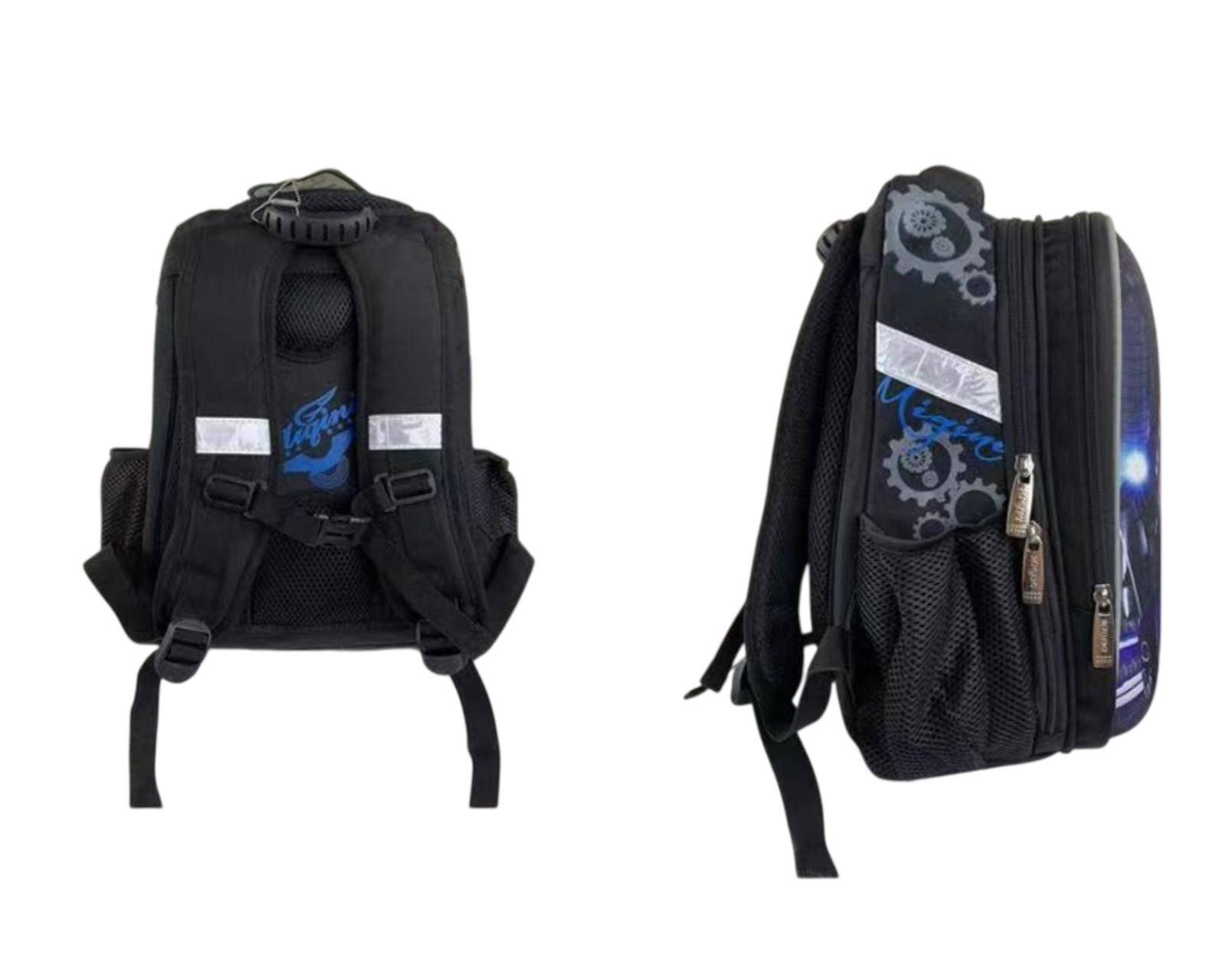 Ghiozdan anatomic Miqiney, cu spatele ortopedic. 3 culori asortate: negru, gri si albastru. Dimensiuni 39*30*19cm