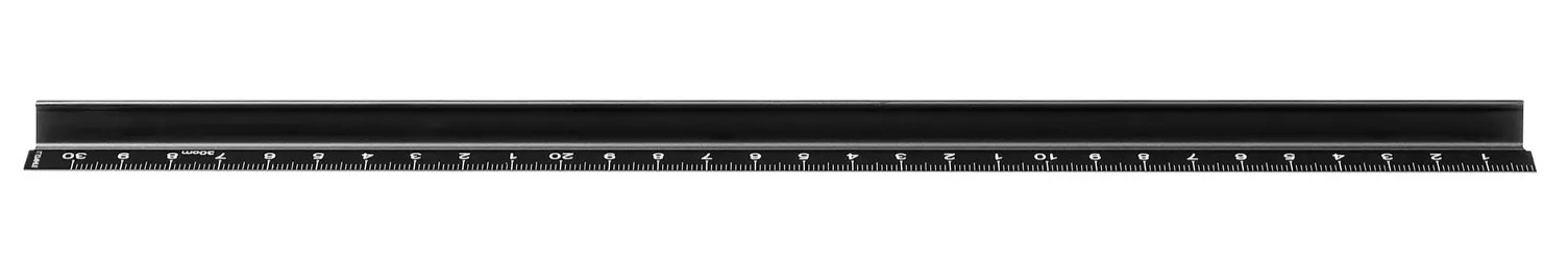 Rigla de inalta calitate, fabricata din aluminiu anodizat negru, pentru o durata lunga de viata. Scala centimetrica usor de citit pentru o precizie maxima de taiere. Muchia de taiere cu inaltimea de 4 mm asigura precizie de taiere si o durata lunga de viata a riglei. Aparatoarea de protectie inalta (12,5 mm) previne eficient accidentarile degetelor. Marginea ridicata previne patarea cernelii. Nu aluneca la desenare sau taiere datorita benzii antiderapante de 15 mm latime din partea inferioara.
