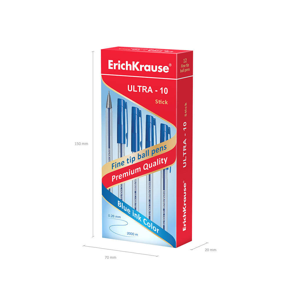 Pix clasic Stick cu virf metalizat, fin rafinat si reincarcare inlocuibila. Manerul are un corp hexagonal transparent, cu o zona de prindere reliefata confortabila si un capac ventilat. Culoarea capacului si a mufei se potriveste cu culoarea cernelii. Virful cu 5 canale si un diametru de bila de 0,7 mm este combinat cu o cerneala cu vascozitate redusa pentru o scriere precisa si rapida. Lungimea liniei continue este de 2000 m cu o grosime de 0,26 mm, ceea ce reprezinta un indicator ridicat in categoria sa. Culoarea cerneala albastru. Cantitate in ambalaj 12 bucati.