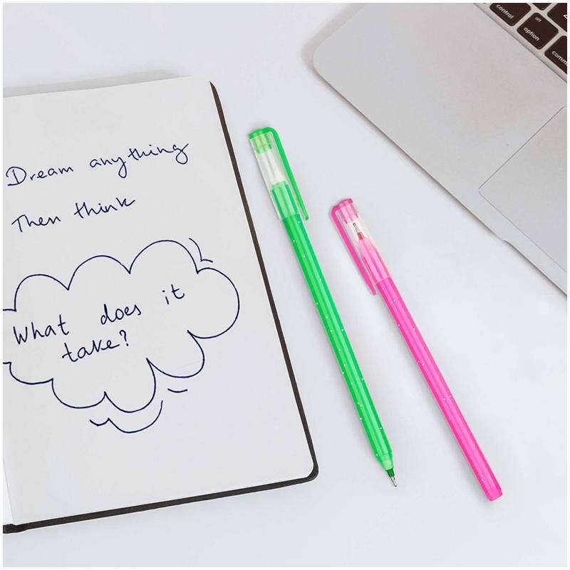 Pixul neon OfficeSpace Funfair creeaza atmosfera pentru fiecare zi datorita culorilor neon stralucitoare ale corpului cu efect de sclipici. Forma rotunda a corpului permite stiloului sa stea confortabil in mana. Datorita clemei, modelul poate fi atasat de imbracaminte sau de un jurnal. Lungimea scrisului continuu este de 900 de metri. Cerneala speciala cu vascozitate scazuta ofera o scriere moale si confortabila. Diametrul unitatii de scris este de 0,6 mm. Culoare cerneala albastru. Grosimea liniei de scriere 0,3 mm. Culoare corp asortat. Lungime maner 140 mm. Cantitate in ambalaj 50 bucati.