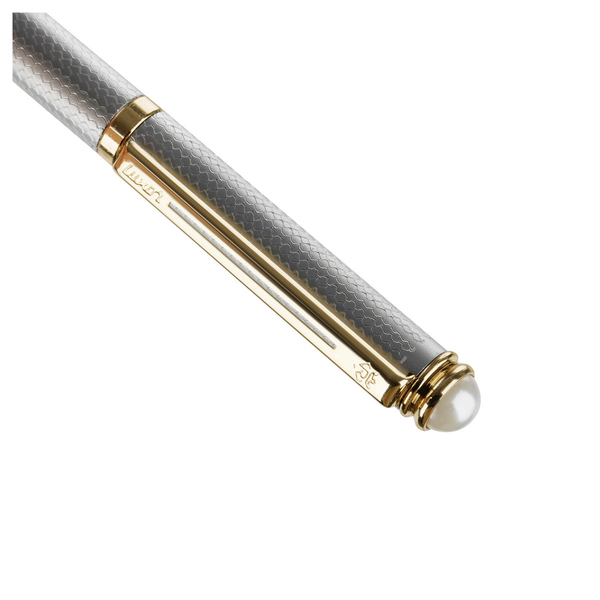 Pix cu bila LUXOR Elan 210025. Un set elegant, dar indraznet, din otel mat si cu ornamente aurii. Pix cu bila cu varf tip Neotec de 1,0 mm. Corpul pixului rotund, culoare corp crom/auriu. Culoare cerneala albastru.