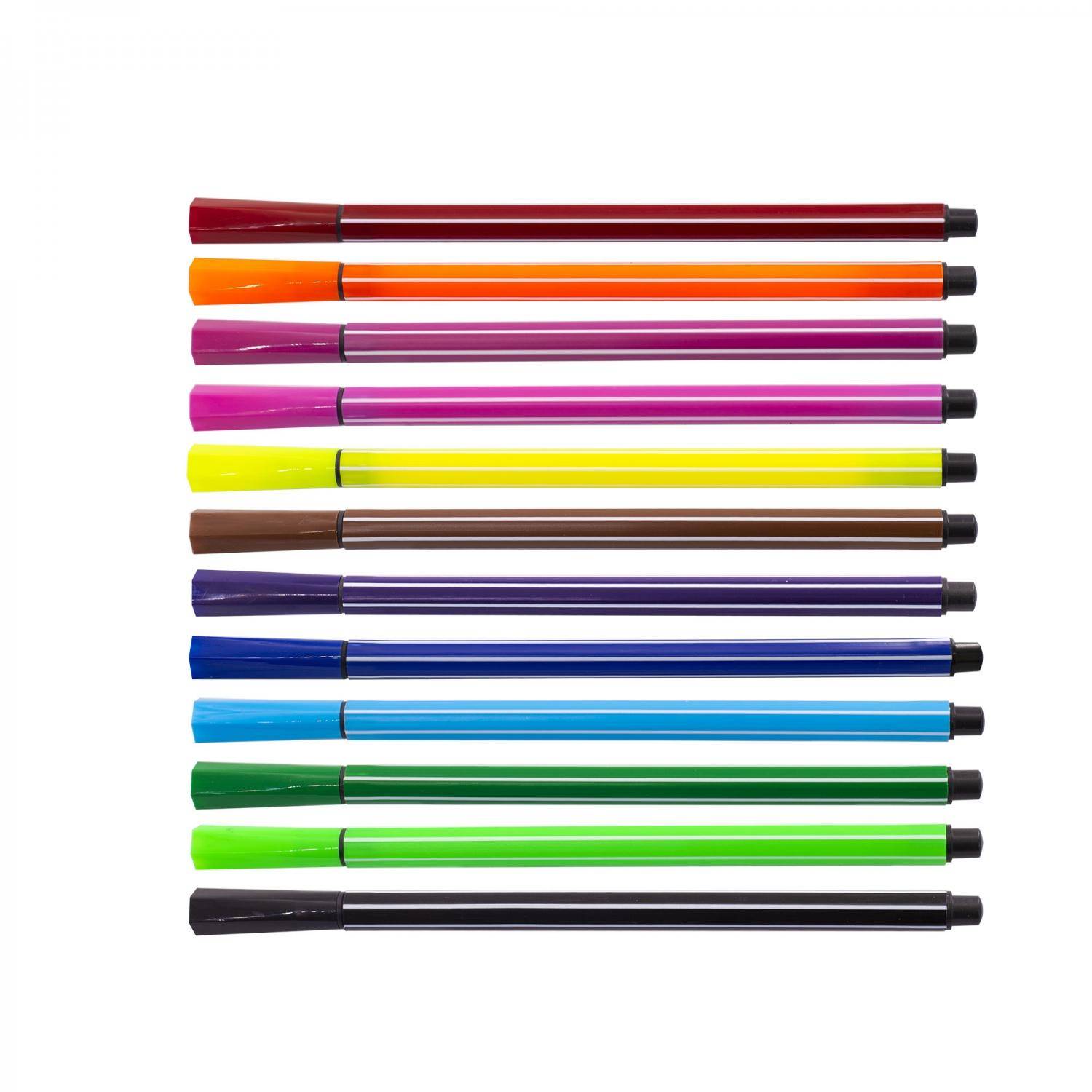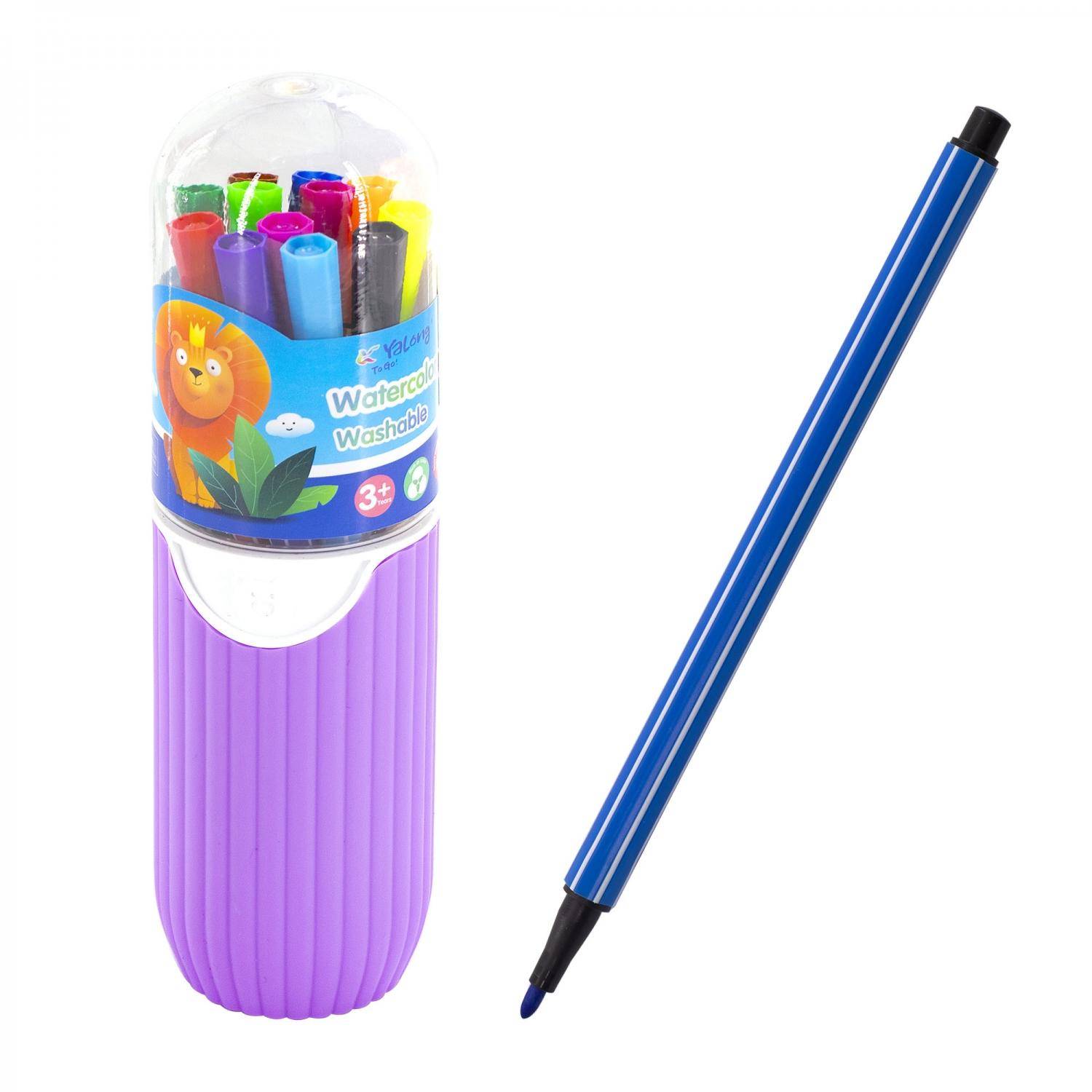 Set carioci 12 culori Yalong. Cerneala lavabila, corp hexagonal, capac ventilat, penat plastic.