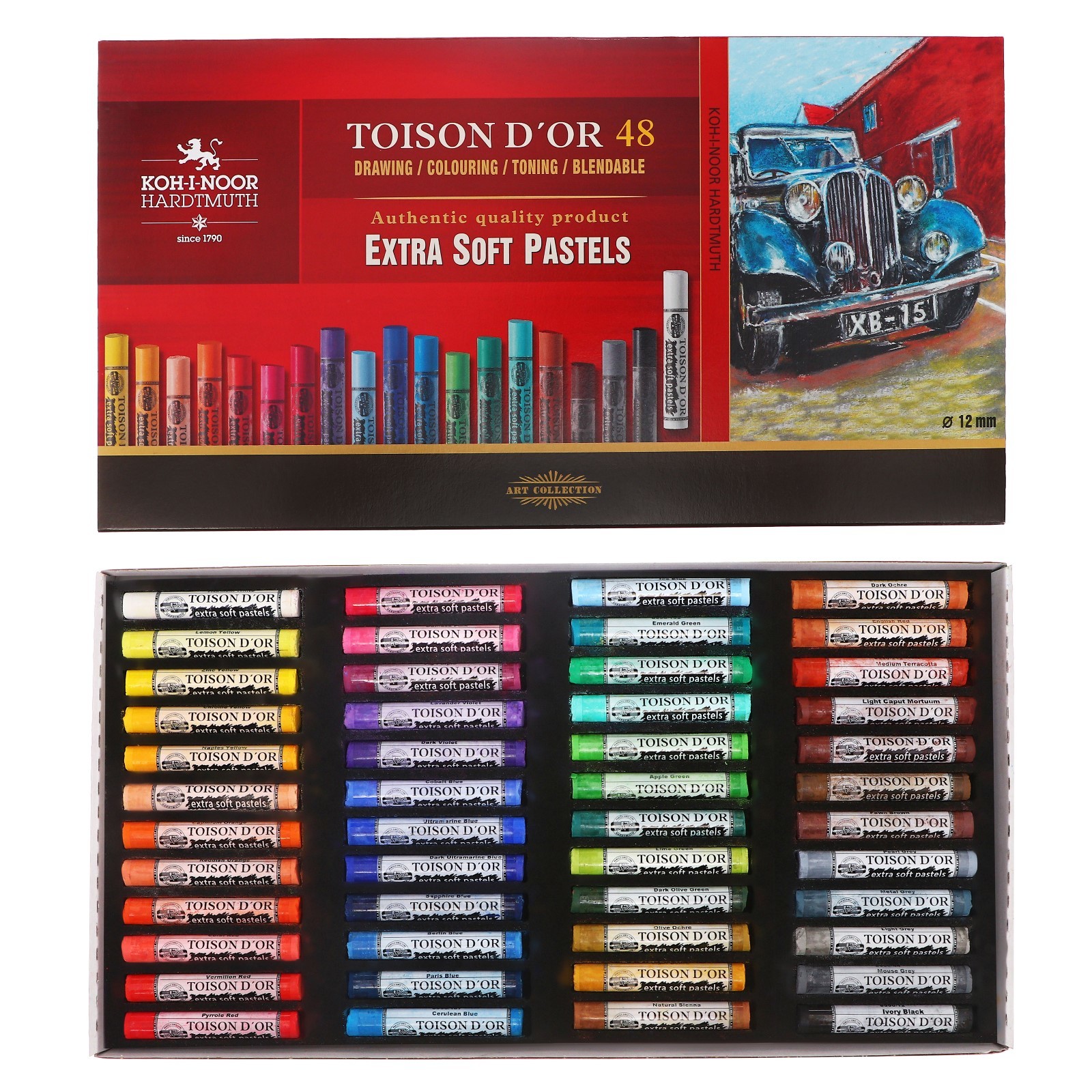 Pastelurile Toison d'or Extra Soft sunt fabricate din pigmenti de inalta calitate, cu un continut minim de lianti. Concentratia mare de pigmenti permite o distribuire usoara a tonului atat pe suprafete luminoase, cat si pe cele intunecate, in timp ce macinarea fina a pigmentilor ofera posibilitati nelimitate in crearea de fundaluri si noi nuante de culoare prin amestecare.