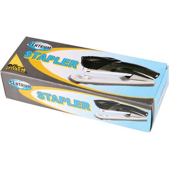 Capsatorul Centrum este perfect pentru utilizarea zilnica. Acest model are un corp din metal cu insertie de metal si o forma ergonomica si un mecanism integral din metal. Corpul este realizat de culoare negru. Capsatorul contine capse cu marimea nr. 24/6. Capseaza pana la 30 foi. Adancimea de introducere a hartiei este de pana la 90 mm. Ambalat in cutie de carton.