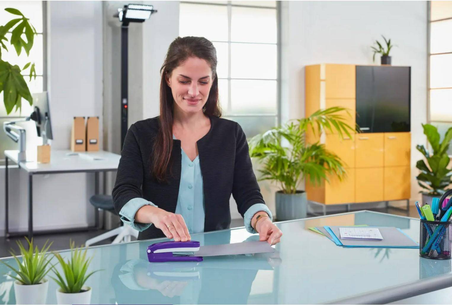 Capsatorul Novus de culoare violet are un decapsator plastificat incorporat si capseaza pana la 25 de foi. Contine pana la 100 de capse Nr. 24/6 si 150 de capse Nr. 26/6. Adancime de introducere a hartiei este de pana la 53 mm. Mecanismul de prindere este realizat din metal rezistent.