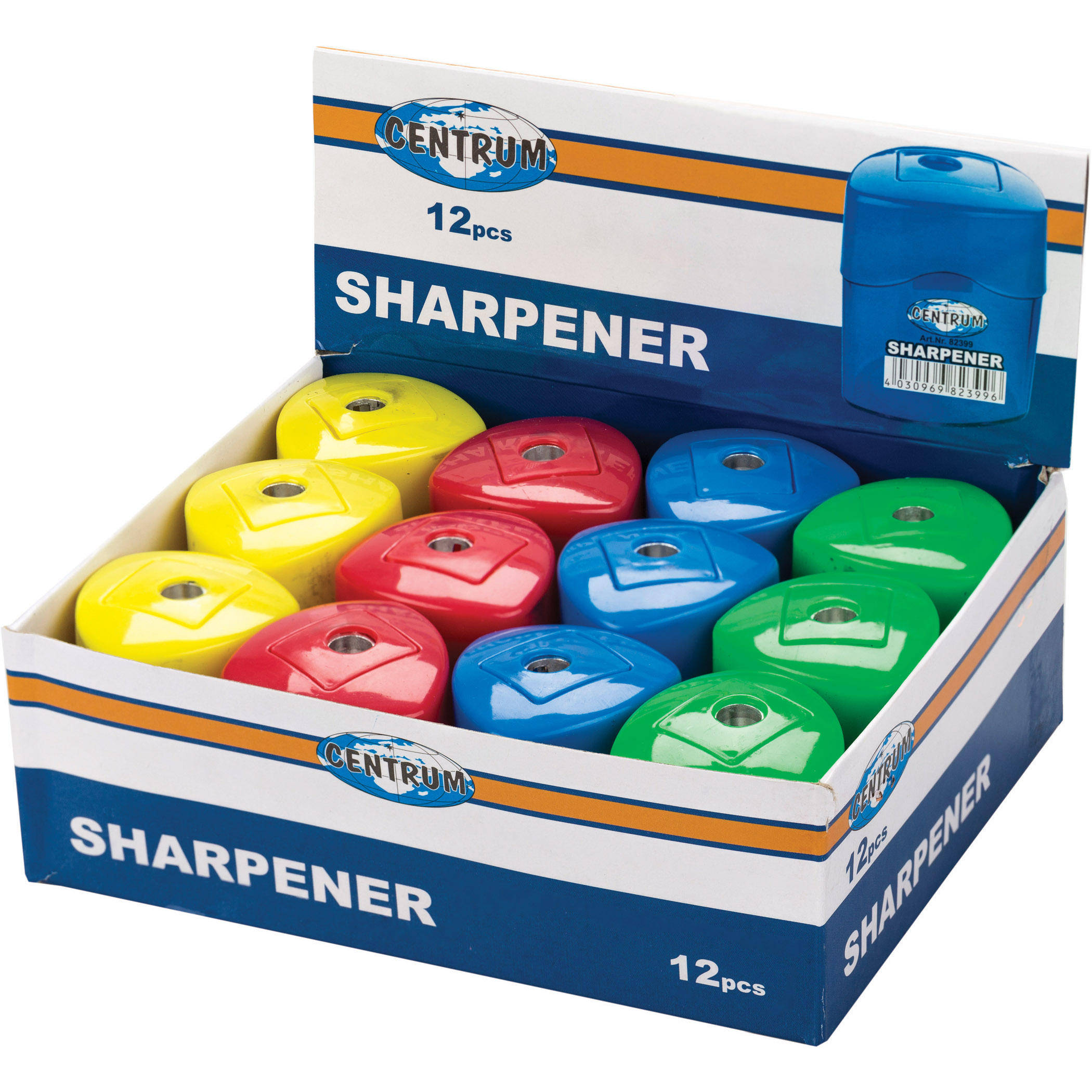 Ascutitoare din plastic cu container este ideala pentru ascutirea creioanelor standard de diferite forme. Ascutitoarea are un container inchis pentru colectarea aschiilor si este echipat cu un orificiu pentru ascutirea creioanelor din grafit colorat si negru. Lama este fabricata din otel de inalta calitate ascutita si rezistenta la deteriorare, fixata cu un surub. Material carcasa plastic. Culoare - asortat. Ambalare: cutie de carton a cate 12 bucati.
