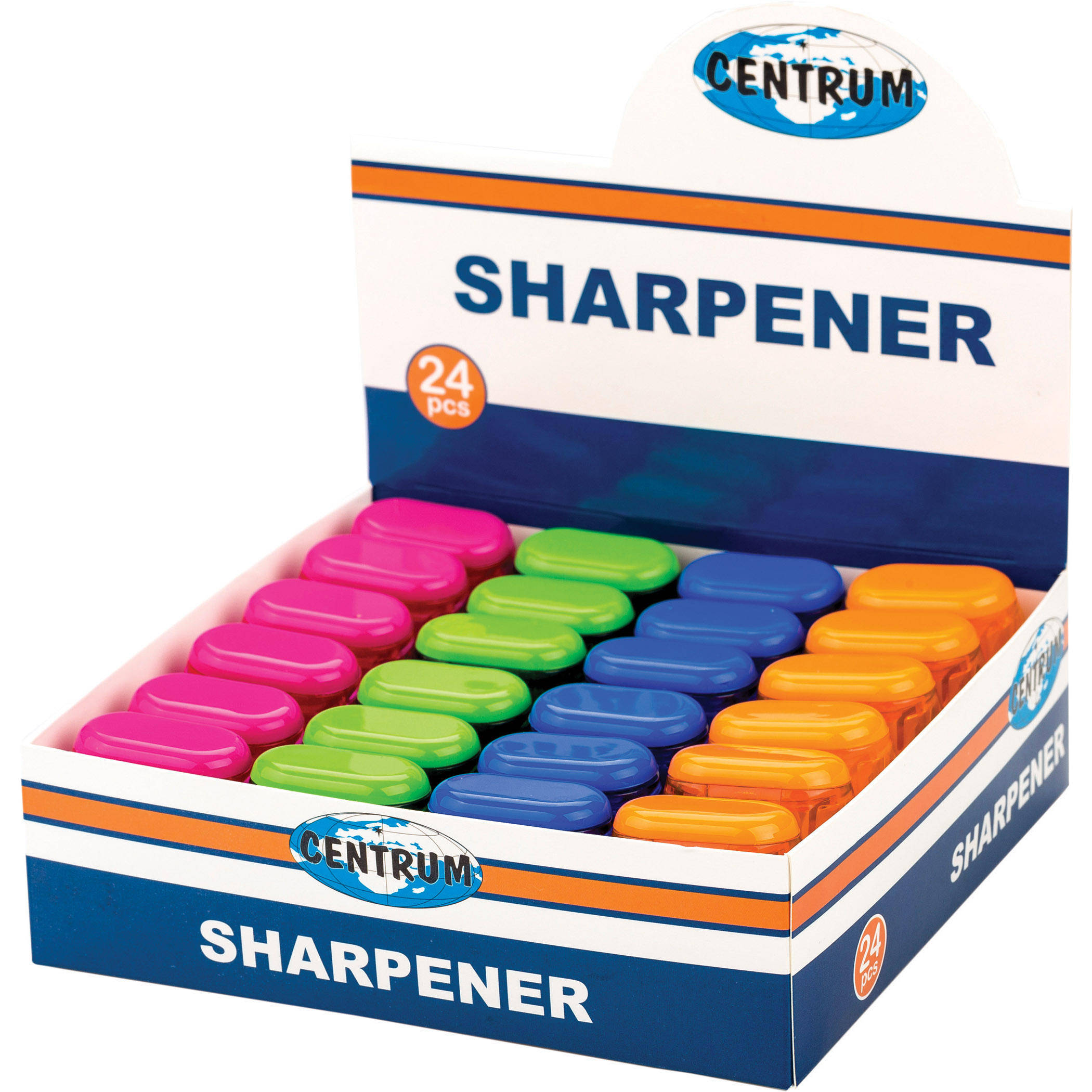Ascutitoare din plastic Centrum este excelenta pentru ascutirea creioanelor. Ascutitoarea contine doua gauri de ascutire pentru creioane standard cu diametrul de pana la 8 mm si pentru creioane jumbo cu diametrul de pana la 12 mm. Dispune de un container inchis pentru colectarea aschiilor. Material corp plastic. Culoare asortat. Ambalare: cutie de carton a cate 24 bucati
