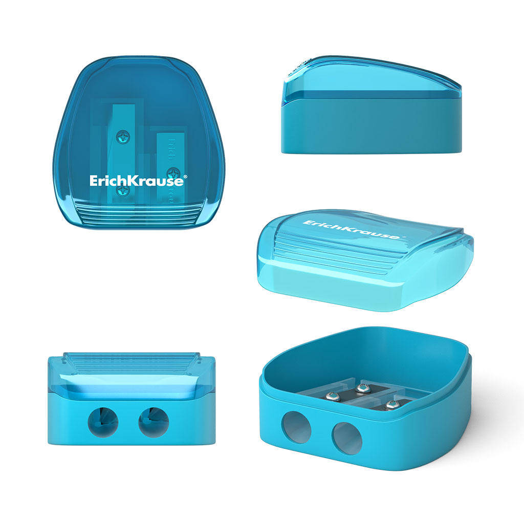 Ascutitoare ErichKrause Duo 33616 plastic, dubla,cu container, asortata