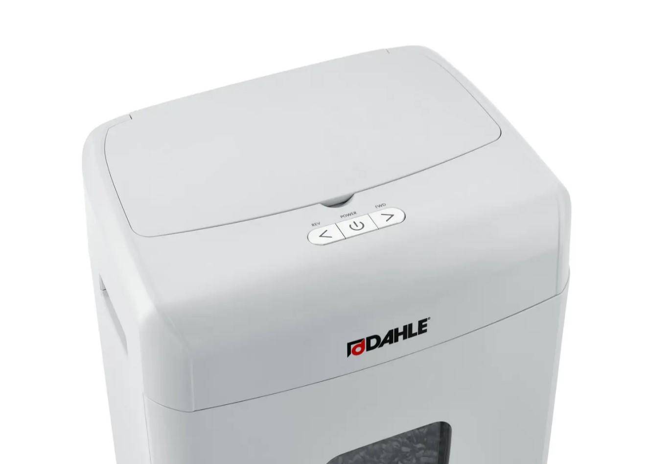 Distrugator universal de hartie de la DAHLE pentru uz de birou. Clasa de securitate P4 (particule de 4 x 12 mm), viteza de operare - 1/8 m/min. Numarul de foi maruntite manual (format A4, 80 g) este de pana la 10 foi si automat pina la 90 foi, dimensiunea deschiderii de incarcare este de 222 mm. Inversare automata (in cazul in care hartia maruntita se blocheaza). Timp de functionare continua � pana la 60 de minute, puterea motorului 240 Watt. Volum cos � 23 l, greutate aparat � 9,0 kg, dimensiuni � 506 � 367 � 263 mm.