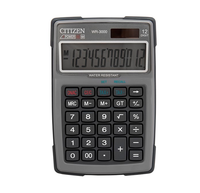 Calculator 12 digits CITIZEN WR-3000 NR-GY, negru-gri, impermeabil