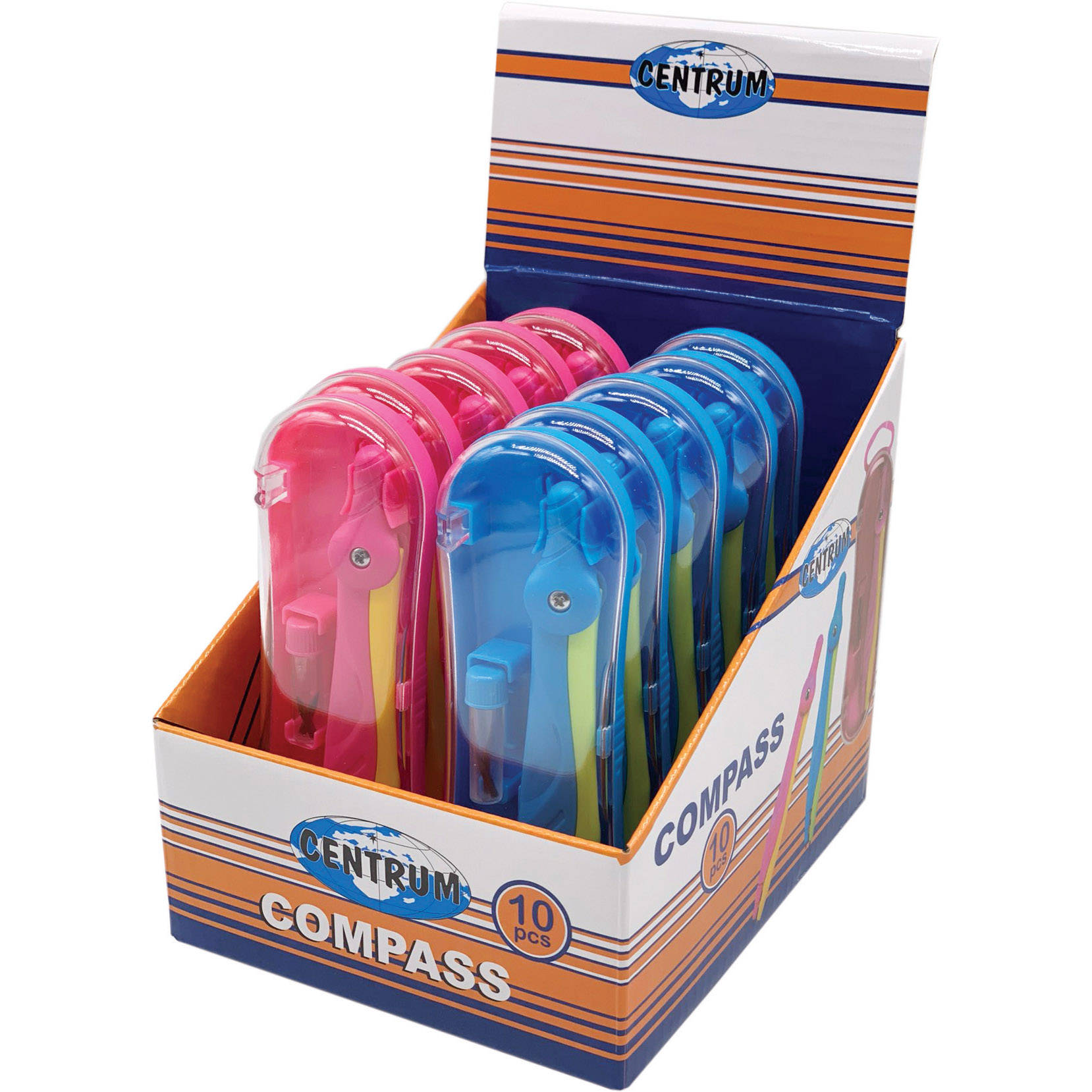 Compas din plastic cu unitate de scris, cu rezerve grif suplimentare. Ambalaj: penar din plastic. Culoare asortata. Dimensiune ambalaj: 13*4*1,5 cm.