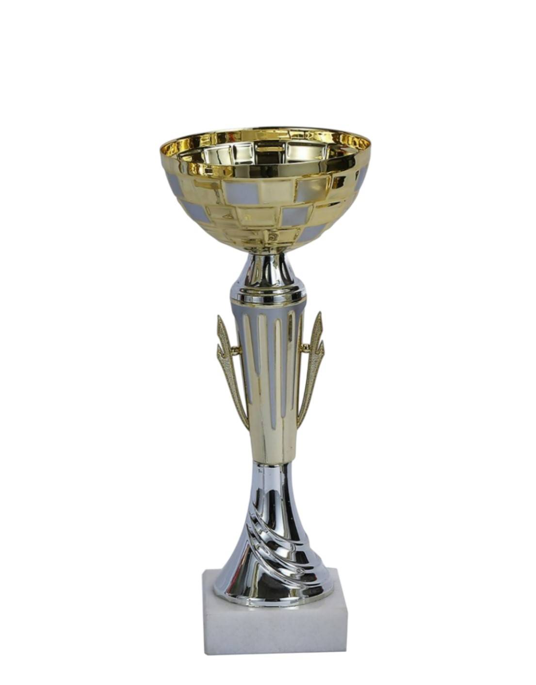 Cupa sportiva este destinata pentru celebrarea fiecarei competitii, turneu sau a unui eveniment sportiv. Inaltimea cupei este de 19 cm. Dimensiunea piedestalului este de 5x2 cm.