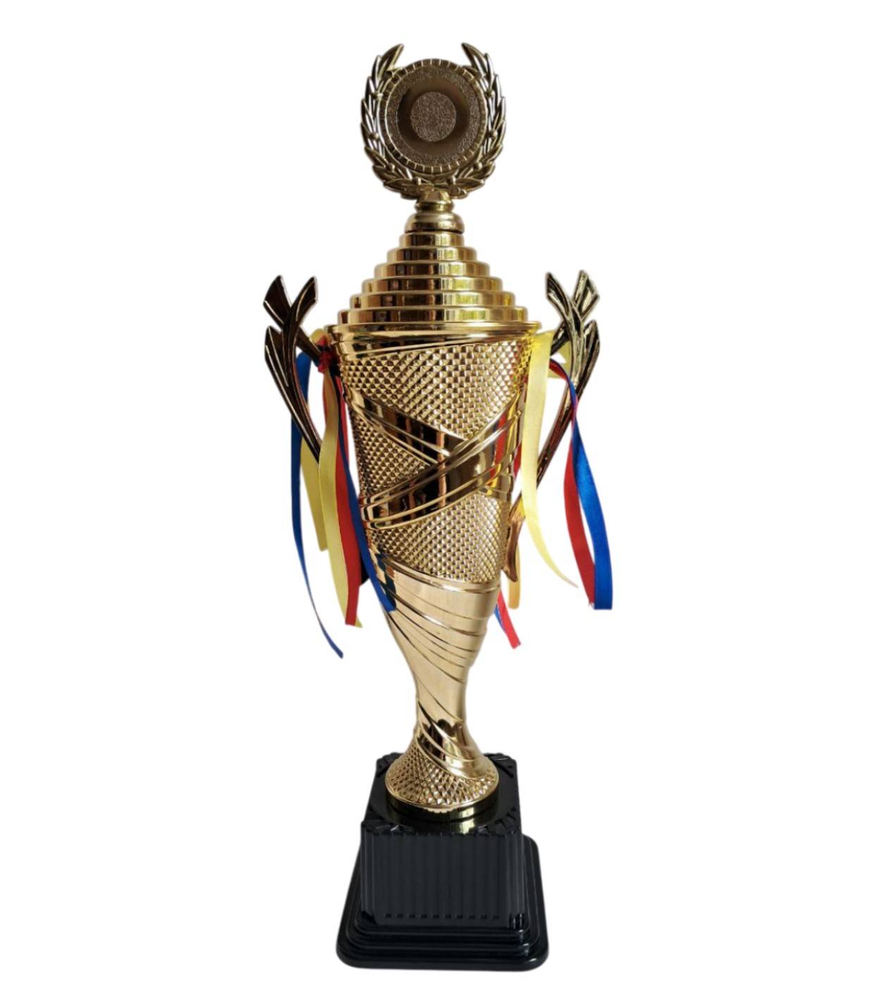 Cupa sportiva este destinata pentru celebrarea fiecarei competitii, turneu sau a unui eveniment sportiv. Inaltimea cupei este de 50 cm. Dimensiunea piedestalului este de 6,9�5,3 cm.