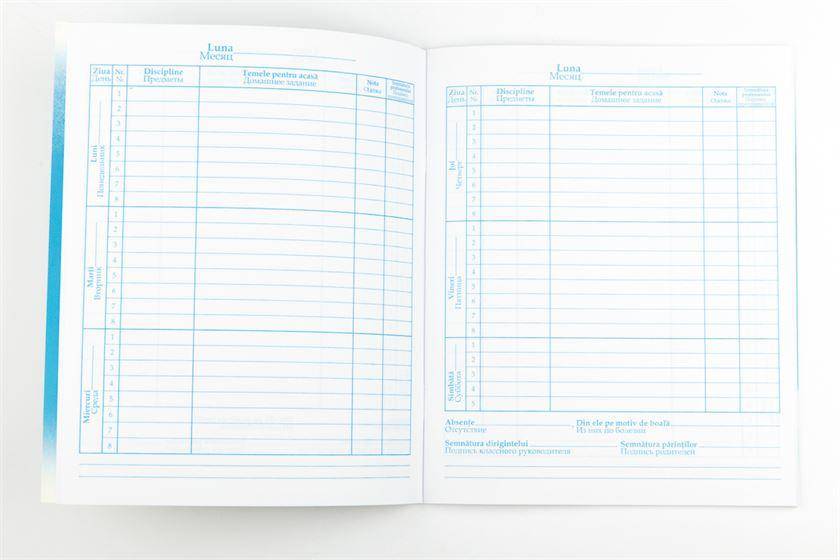 Agenda are functia de a inregistra notele primite la lectii, comentarii privind comportamentul si staruinta, un mijloc de comunicare intre profesori si parinti, precum si un indicator al performantei elevilor. Coperta este din carton celulozic cu densitatea de 230 gr/m2. Tipul prinderii cu capsa, format A5 165x210 mm. Grosimea hartiei 65 gr/m2. Cantitate in amabalaj 32 bucati.