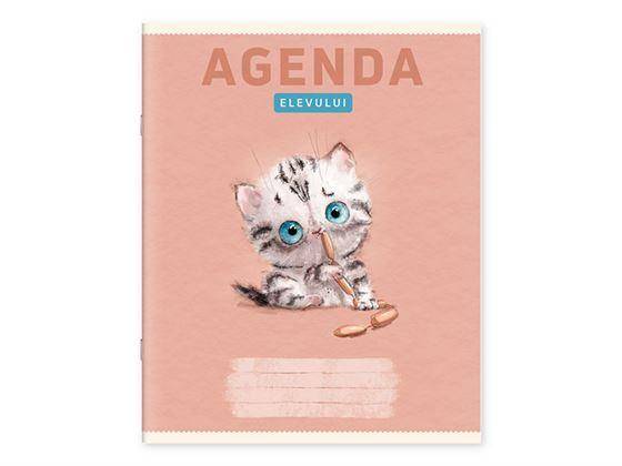 Agenda are functia de a inregistra notele primite la lectii, comentarii privind comportamentul si staruinta, un mijloc de comunicare intre profesori si parinti, precum si un indicator al performantei elevilor. Coperta este din carton celulozic cu densitatea de 230 gr/m2. Tipul prinderii cu capsa, format 170x210 mm. Grosimea hartiei 65 gr/m2. Cantitate in amabalaj 32 bucati.