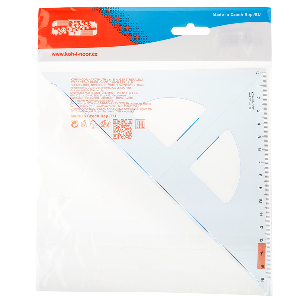 Echerul Koh-I-Noor este conceput pentru desen si desen tehnic, uz scolar si pentru birouri. Tehnologia de stantare calda este utilizata pentru a imprima scala. Imprimarea este rezistenta la uzura in conditii normale de utilizare. Tip echer cu raportor. Dimensiune 45x16cm. Material plastic. Corp albastru.