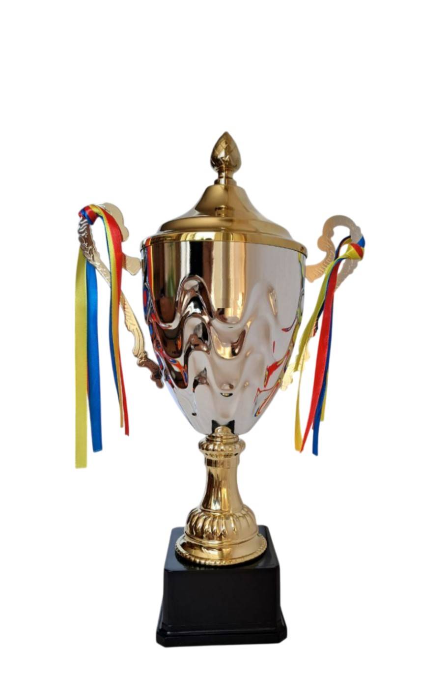 Cupa sportiva este destinata pentru celebrarea fiecarei competitii, turneu sau a unui eveniment sportiv. Inaltimea cupei este de 31 cm. Dimensiunea piedestalului este de 7x3,7 cm.