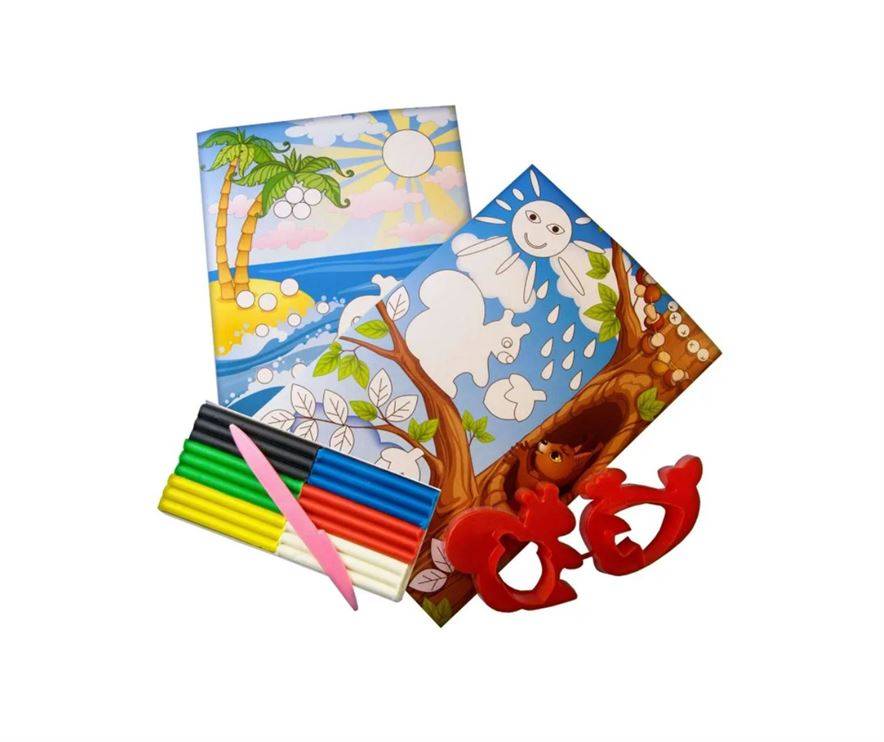 Set de modelare din plastilina. Veverita este destinat crearii unei imagini tridimensionale pe o suprafata (o carte de colorat cu elemente nevopsite) folosind tehnica aplicatiei. Piesele multicolore vor fi figurine pre-decupate folosind matrite duble - nisip din plastilina moale de ceara. Continutul setului: plastilina moale 6 culori 2 desene color 2 forme duble cutit din plastic