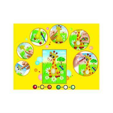 Desen cu plastilina, artistul mic va adora acest set pentru creativitate. In cutie il asteapta un cartonas cu un desen al unei girafe, precum si plastilina in 6 culori. Copilul trebuie sa aleaga culorile potrivite si sa aplice plastilina pe imaginea finita. Pentru a completa imaginea girafei, setul include ochi cu efect de miscare din plastic. Copilul se va bucura de aceasta activitate distractiva si va ajuta la dezvoltarea abilitatilor motorii fine.