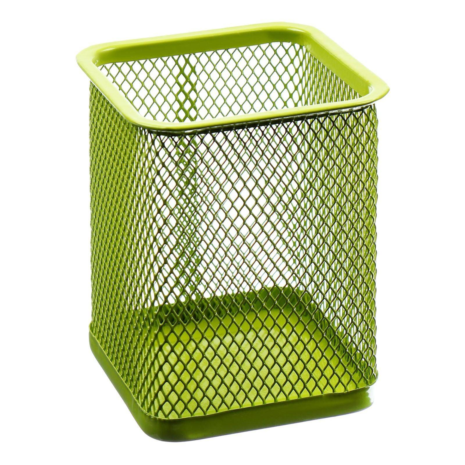 Suport pentru pixuri 804, patrat, metalic, plasa, verde