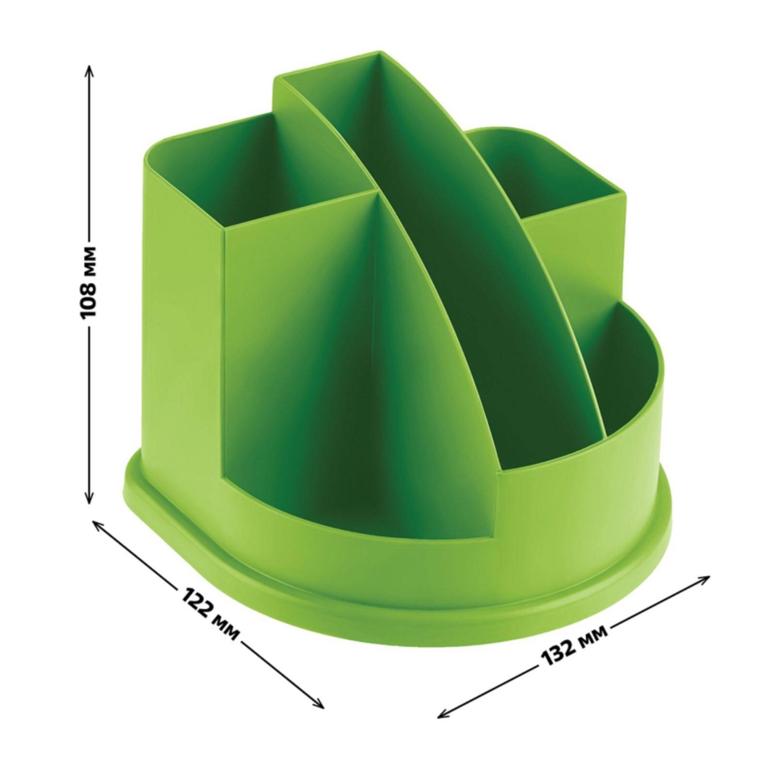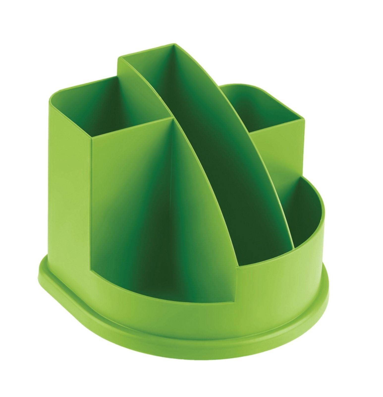 Suport STAMM pentru instrumente de scris si articole de papetarie mici. Dispune de 5 compartimente. Fara umplutura. Dimensiune 132x122x108 mm. Material corp: plastic. Culoare verde.
