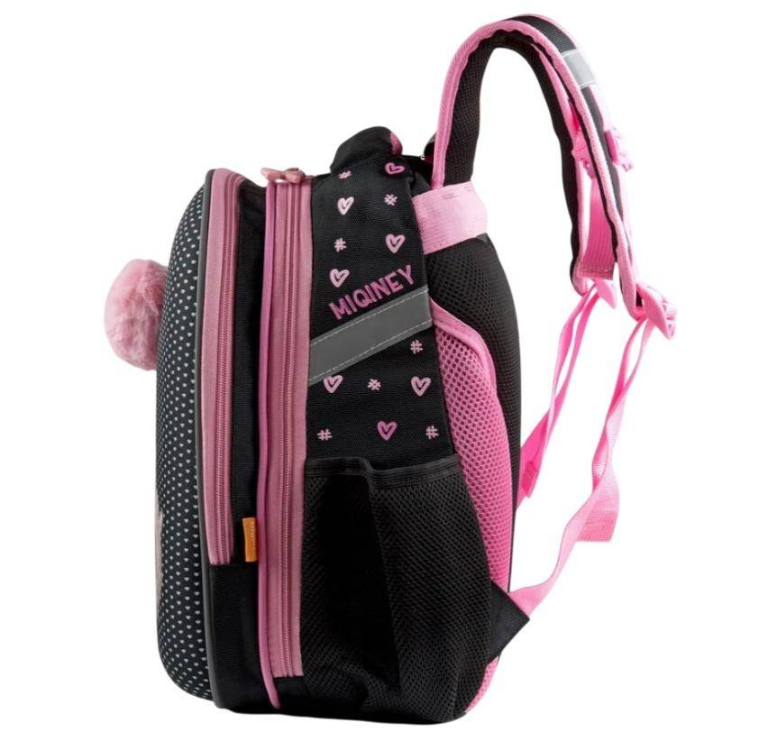 Ghiozdan de scoala Miqiney este combinatia perfecta dintre confort si functionalitate. Acest ghiozdan are dimensiuni de 39x30x19 cm, dispune de un compartiment principal spatios pentru carti, caiete si alte materiale necesare. Exista, de asemenea, buzunare separate in interior pentru depozitarea comoda a obiectelor personale si a accesoriilor. Ghiozdanul este echipat cu bretele reglabile confortabile care permit sa il ajustati la parametrii individuali ai copilului. In plus, este prevazut si cu buzunare suplimentare la exterior pentru sticla cu apa, gustari sau alte obiecte necesare. Dispune de manere de transport confortabile si o catarama reglabila care permite sa il transportati pe umar. De asemenea, este prevazut si cu diverse buzunare si compartimente in care poti plasa carti, caiete, mape si alte obiecte necesare. Ghiozdanul este disponibil in 3 culori: violet, sur si negru
