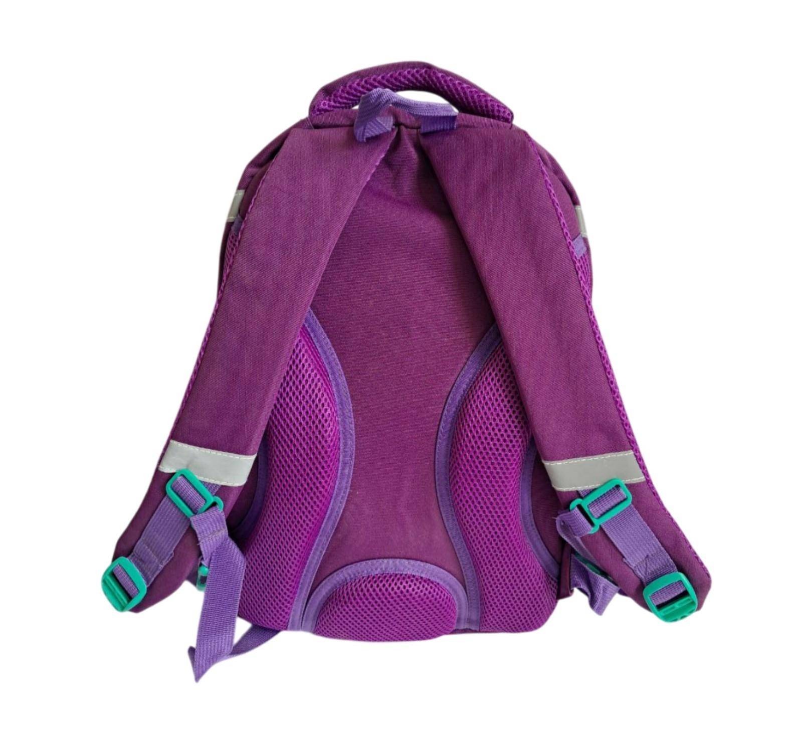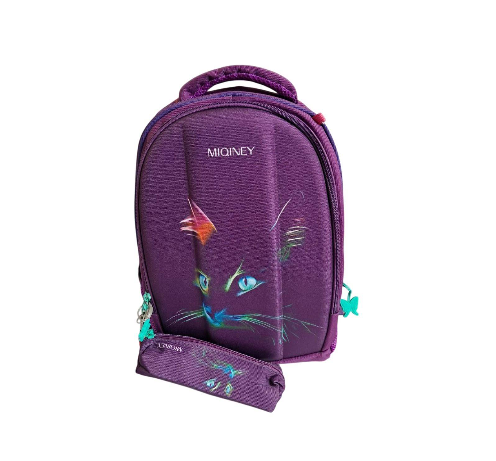 Ghiozdan anatomic Miqiney, cu spatele ortopedic si cu penar. 2 culori asortate: violet si negru. Dimensiuni 40*29*17cm