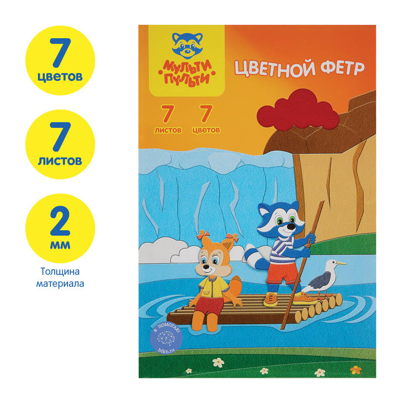 Setul de fetru moale colorat Multi-Pulti este perfect pentru lucrari creative, aplicatii si diverse mestesuguri. Setul include urmatoarele culori: rosu, galben, verde, albastru, cafeniu, roz, portocaliu.