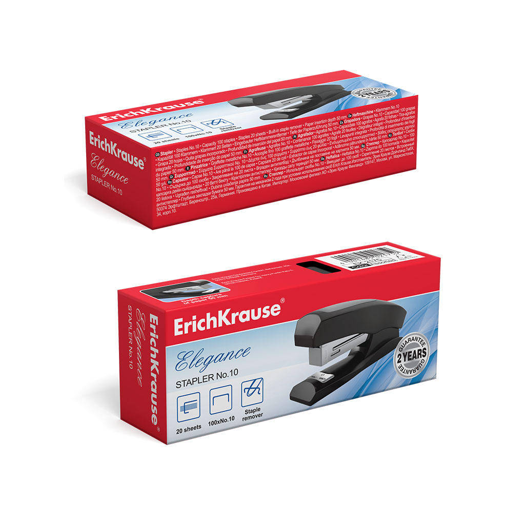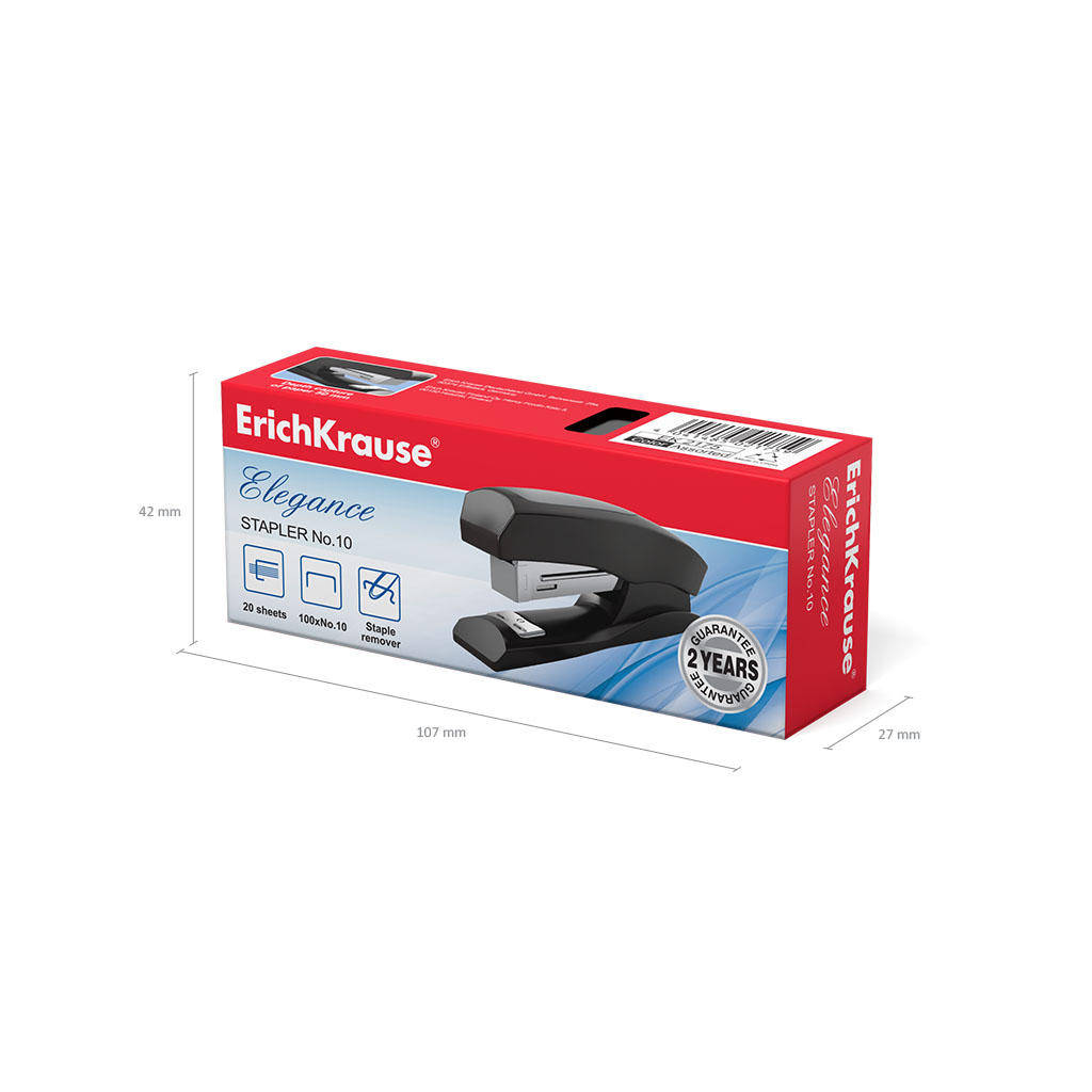 Capsatorul ErichKrause Elegance Classic cu un decapsator incorporat este fabricat din plastic rezistent la impact, cu un mecanism din otel de inalta calitate. Are un mecanism de alimentare cu capse din metal. Contine pana la 100 de capse Nr.10. Perforeaza pana la 20 de foi. Adancimea de introducere a hartiei este de pana la 50 mm. Capsatorul vine in mai multe optiuni de culoare.