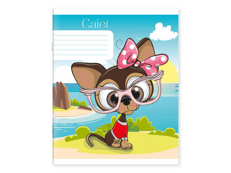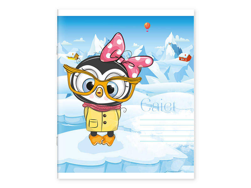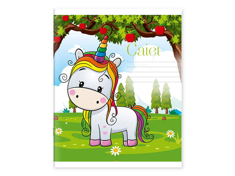 Caiet de scoala este un accesoriu universal pentru a face teme si teste. Dispune de un design dragut si este ideal pentru toti elevii. Format - A5 (165x210 mm). Tipul prinderii pe capsa si este format din 12 foi. Tip de liniere linie. Culoare coperta colorata. Caietul dispune de hartie offset cu o densitate de 55 g/m2. Coperta pentru caiet este realizata din carton gros de celuloza, cu colturi rotunjite cu o densitate de 210 g/m2.