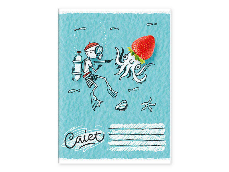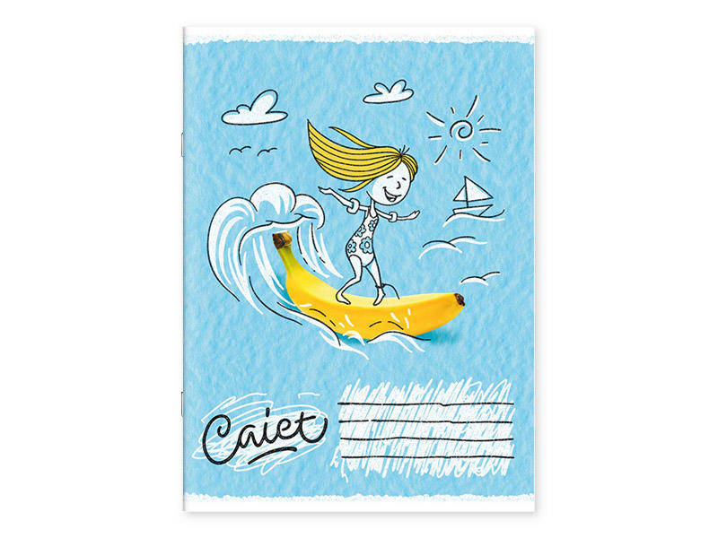Caiet de scoala este un accesoriu universal pentru a face teme si teste. Dispune de un design dragut si este ideal pentru toti elevii. Format - A5, Euro. Tipul prinderii pe capsa si este format din 24 foi. Tip de liniere linie oblica deasa. Culoare coperta colorata. Caietul dispune de hartie offset cu o densitate de 60 g/m2. Coperta pentru caiet este realizata din carton gros de celuloza, cu colturi rotunjite cu o densitate de 190 g/m2. Ambalaj a cate 12 bucati.