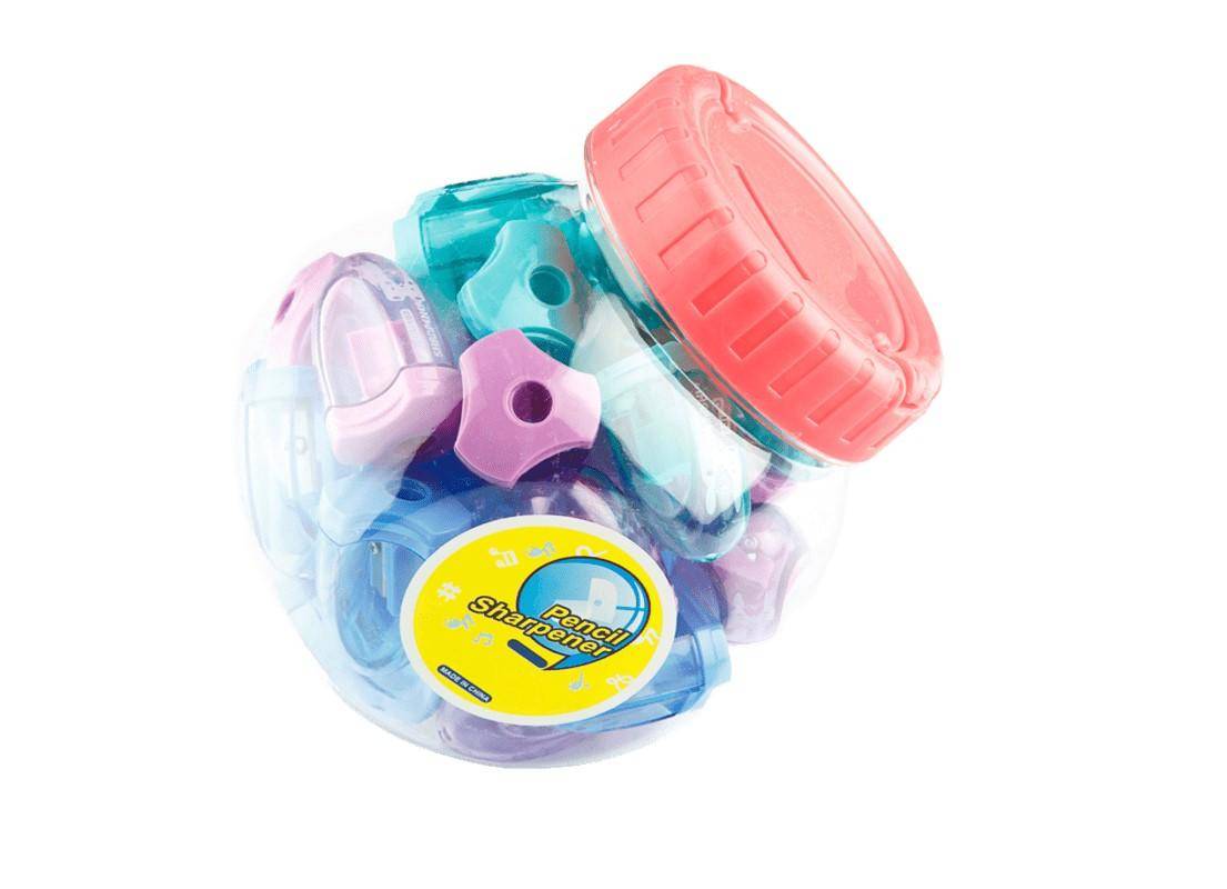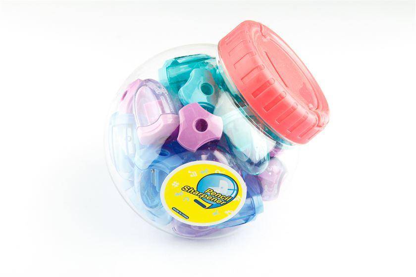 Ascutitoare din plastic cu container este ideala pentru ascutirea creioanelor standard de diferite forme. Ascutitoarea are un container inchis pentru colectarea aschiilor si este echipat cu un orificiu pentru ascutirea creioanelor din grafit colorat si negru. Lama este fabricata din otel de inalta calitate - ascutita si rezistenta la deteriorare, fixata cu un surub. Material carcasa � plastic. Culoare - asortat. Ambalare: cutie de carton a cate 36 bucati.