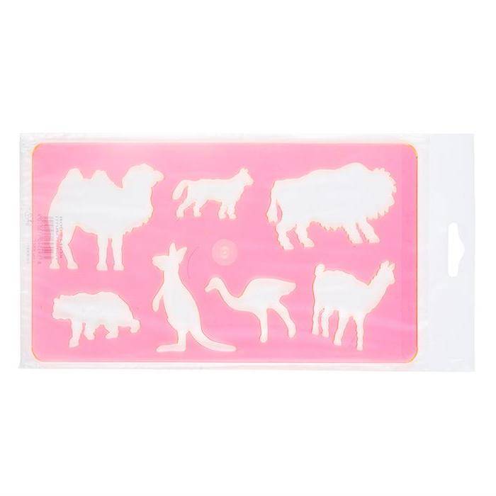 Sablon Animale din polistiren transparent. Conceput pentru a desena contururile animalelor cu un creion, carioca, stilou sau creta. Dimensiune 12x21 cm. Culoare roz. Ambalat intr-un blister cu pandantiv euro.
