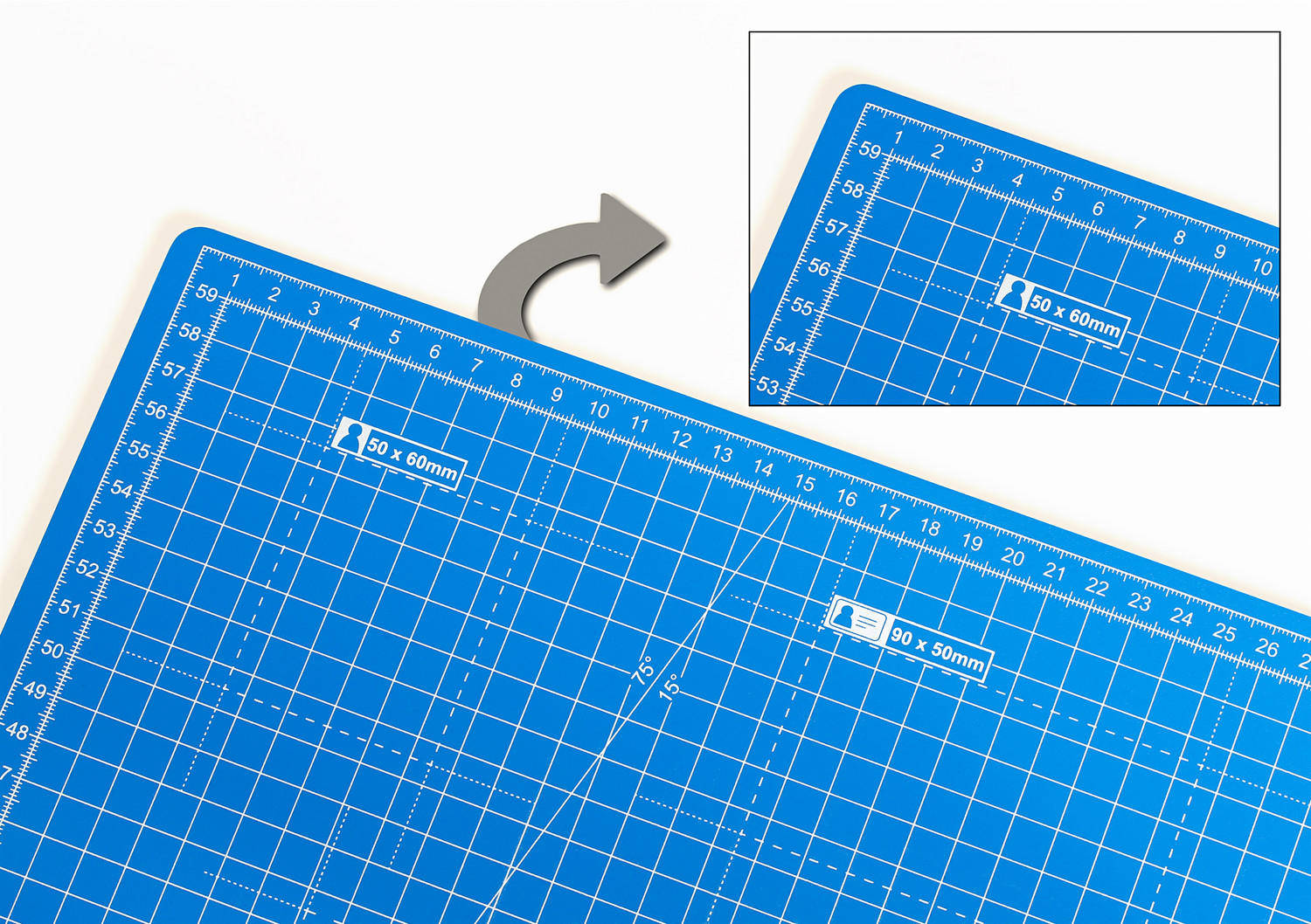 Самовосстанавливающийся коврик для резки с неразрезаемым серцевиной (60 x 90 см). Коврик для резки с прочной 5-слойной конструкцией с устойчивым к порезам сердечником и самовосстанавливающейся режущей поверхностью. Четко расположенные направляющие линии для оптимального позиционирования разрезаемого материала. Коврики для резки DAHLE имеют двустороннюю печать, что позволяет использовать обе стороны и гарантирует длительный срок службы.