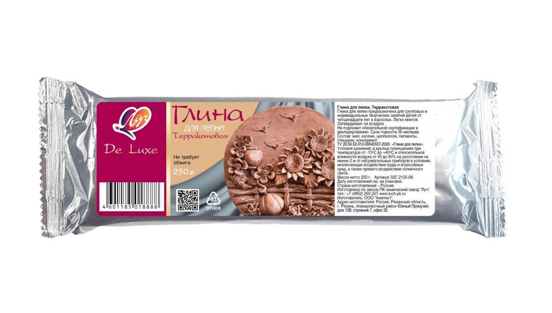 Полимерная глина ЛУЧ полностью готова для работы. Не требует обжига, готовое изделие затвердевает на воздухе. Состав: мел, каолин, целлюлоза, пигменты, глицерин, консервант. Фасовка брусок 500 грамм в фольгоированном пакете.