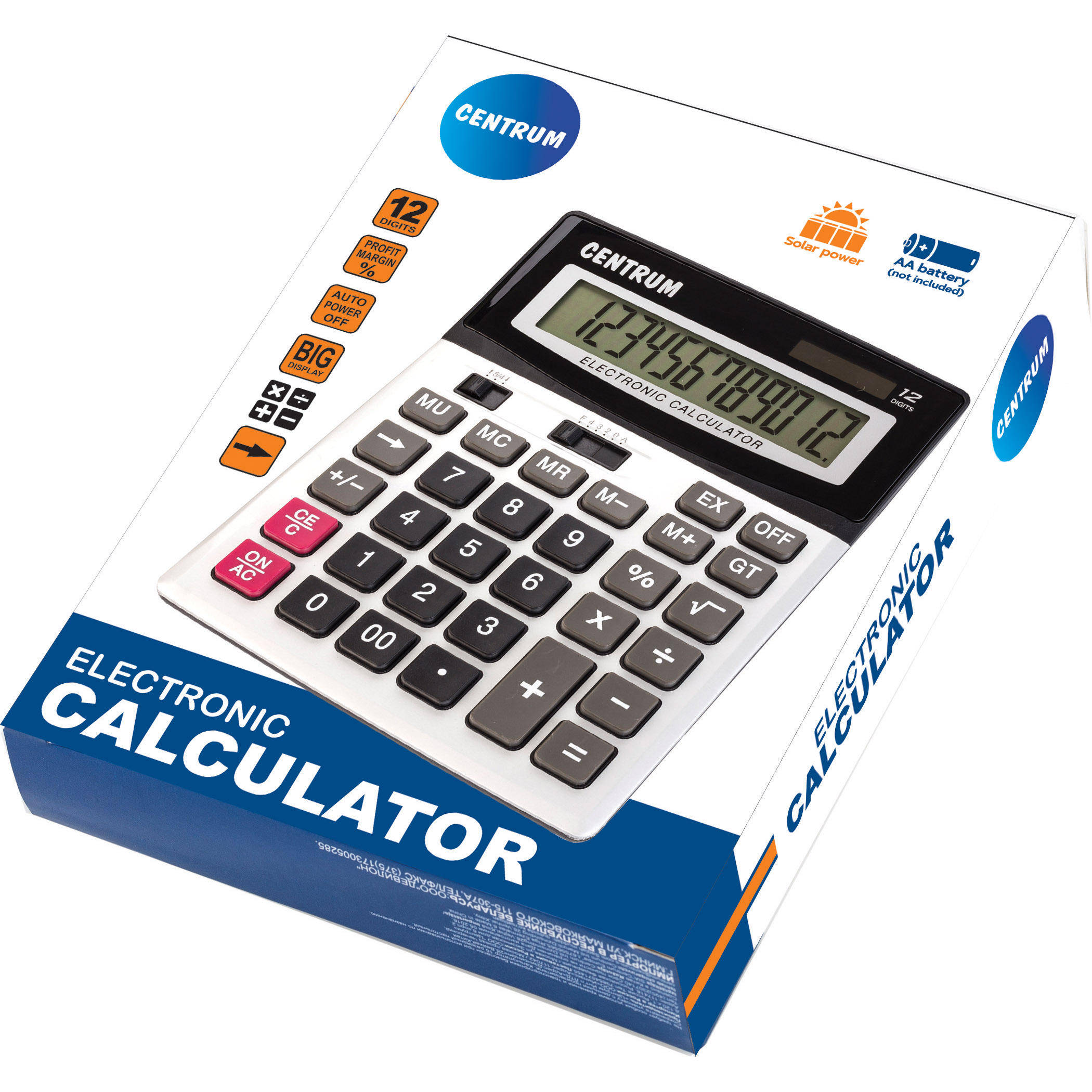 12-ти разрядный настольный калькулятор Centrum незаменимый помощник в офисе, школе и дома. Оптимальный набор функций поможет автоматизировать расчёты: вычисление квадратного корня, функция смены знака. Двойное питание (солнечная батарея + батарейка AG10((LR1130)) и автоматическое отключение увеличивают срок службы. Упакован в картонную коробку. Размер калькулятора 210х155х20 мм, цвет серый. Эргономичная форма, крупные клавиши, устойчивые прорезиненные ножки позволят работать эффективнее.
