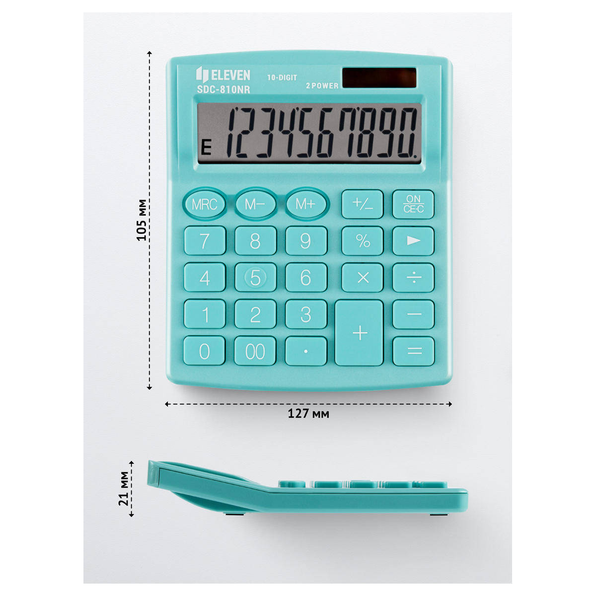 10-ти разрядный настольный калькулятор Eleven SDC810NRGN предназначен для выполнения арифметических операций. Оптимальный набор функций поможет автоматизировать расчёты: функция смены знака, коррекция последнего введенного значения. Двойное питание (солнечная батарея + батарея AG10, LR1130, LR54) и автоматическое отключение увеличивают срок службы. Размер калькулятора 127x105x21 мм, вес 94 г, цвет бирюзовый.