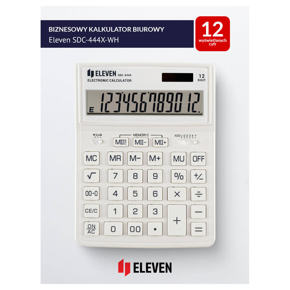 Калькулятор Eleven SSDC444XWH, 12 разрядов, белый