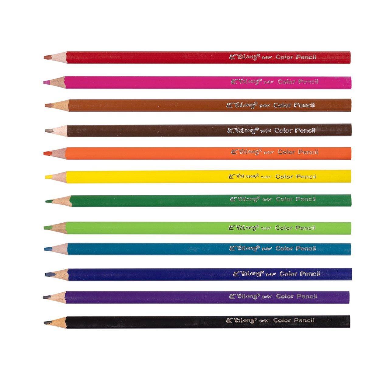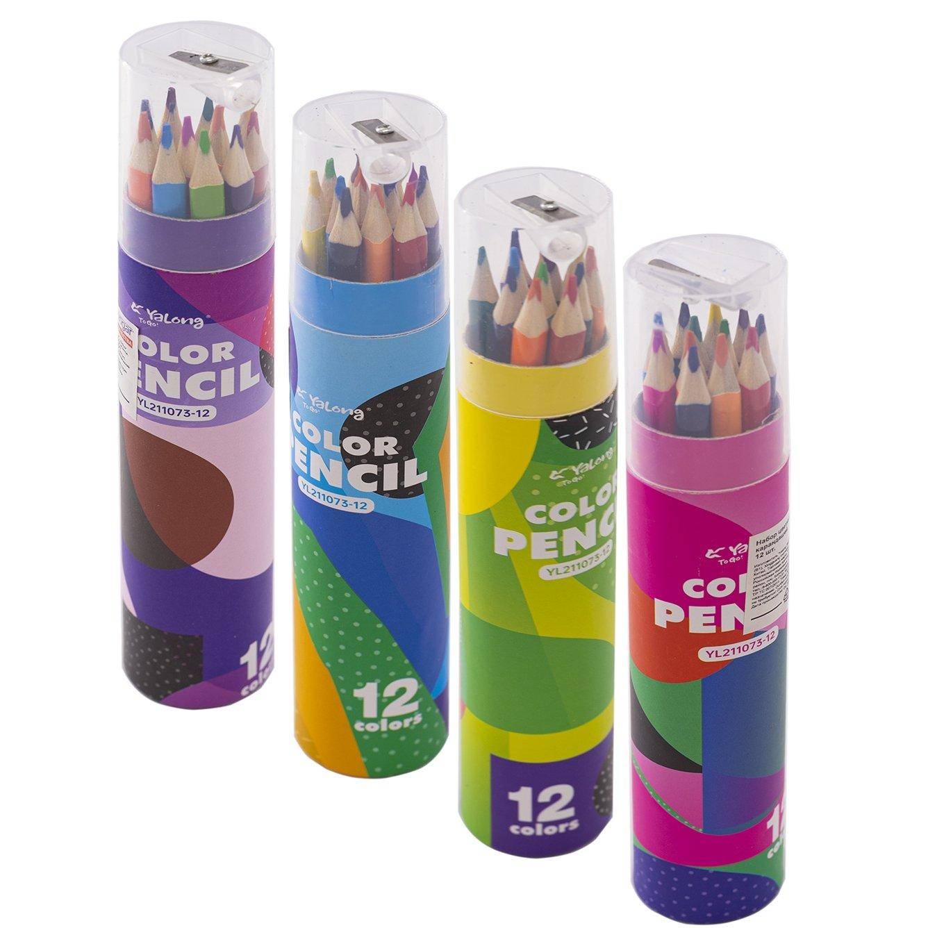 Набор цветных карандашей Yalong на 12 цветов. Корпус трехранный, материал дерево. Упаковка: картонный тубус .