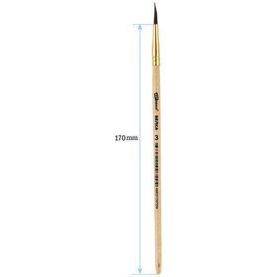 Художественная кисти ArtSpace Нр 3 изготовлена из натурального волоса белки. Подходят для начальных уроков рисования. Кисть круглой формы с короткой ручкой из дерева предназначены для работы с акварельными красками. Эластичный, мягкий волос прекрасно сохраняет форму пучка. Специальные технологии обработки повышают его упругость. Кисть позволяет создавать точнкие линии благодаря способности волосков плотно прилегать друг к другу во влажной среде. Длина 170 мм. Материал ручки: дерево.