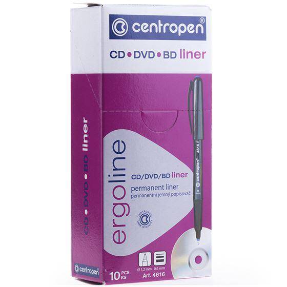 Линер 4616 с эргономичным дизайном. Для надписей на CD, DVD, BD. Имеет стойкие чернила, на спиртовой основе. Цвет чернила синего цвета. Тонкий пластмассовый пишущий узел. Толщина линии 0,6 мм. Корпус треугольной, черного цвета