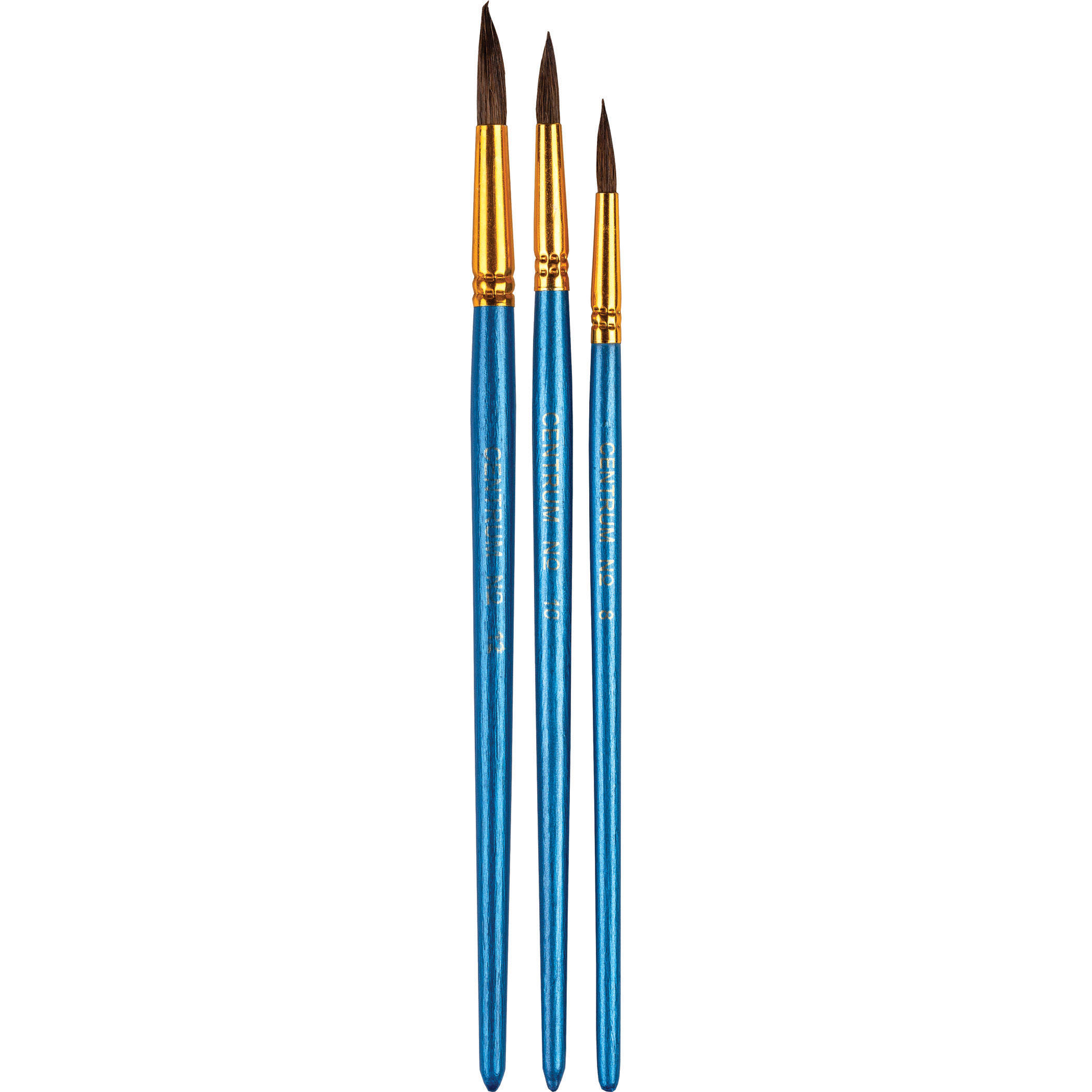 Набор художественных кистей для рисования Centrum изготовлен из волоса пони. Кисти хорошо впитывают, удерживают и отдают краску. Изделия подойдут для работы с акварелью, гуашью, темперой, водополимерными материалами. Форма кисти круглая. Материал ручки пластик. Цвет ручки кисти синий. В наборе представлено 3 штук: Нр 8,10,12. Товар упакован в блистер с европодвесом.