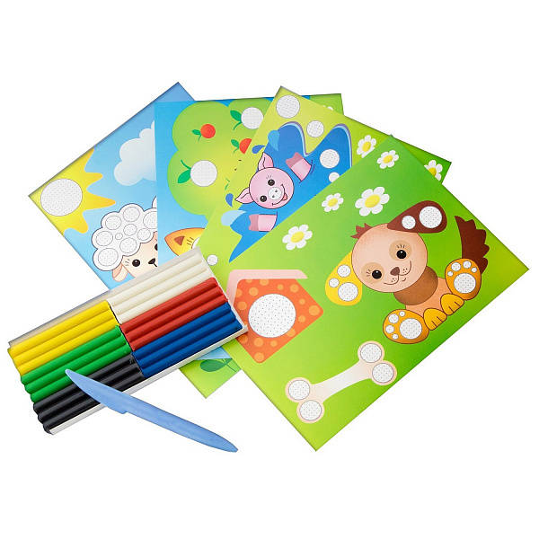 Набор Пластилиновая мозаика представлен в яркой подарочной упаковке в серии товаров для малышей Кроха. В набор входит: пластилин 6 цветов, цветные рисунки 4 шт и стек 1 шт. Мягкий пластилин из набора позволяет быстрее научить приёмам работы с пластилином: разрывать на крупные куски, отщипывать мелкие кусочки, раскатывать, расплющивать и придавливать к поверхности. Сюжеты рисунков понятны малышам и соответствуют уровню развития зрительного восприятия и представлений об окружающем мире.