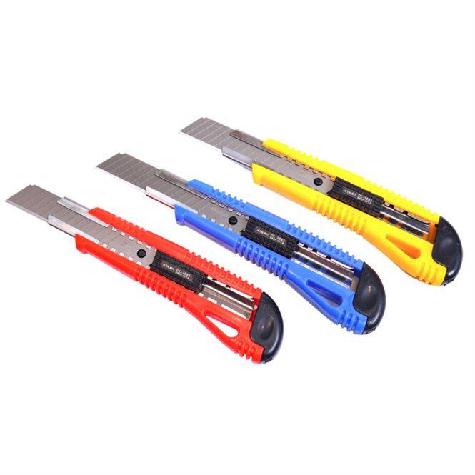 Нож со стальным выдвижным многосекционным лезвием в пластиковом корпусе. Штрина лезвия 18 мм. Цвет ассорти. Упаковка прозрачный блистер с Европодвесом.