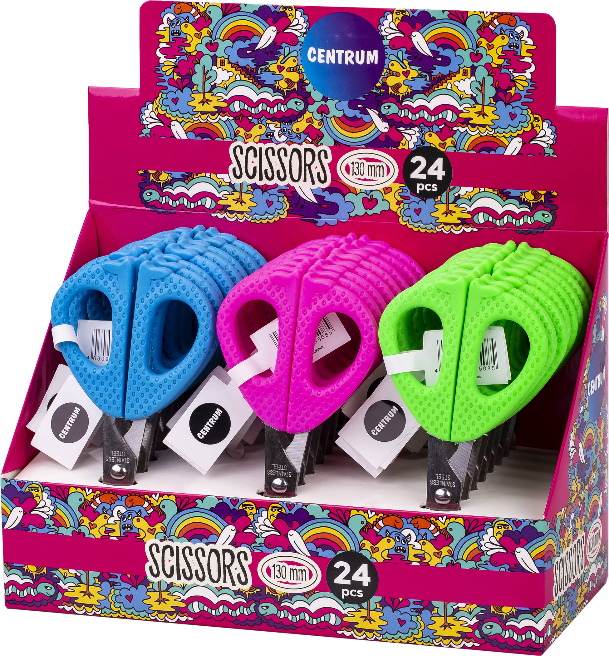Ножницы для детского творчества Centrum выполнены из качественной нержавеющей стали. Компактный размер 12 см легкопомещается в пенале. Закруглённые концы лезвий обеспечивают безопасное использование. Ручки удобной формы изготовлены из высококачественного пластика. Красочная картонная упаковка дополнена европодвесом. Цвет ножниц ассорти.