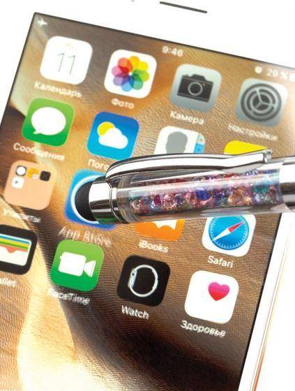 Шариковая ручка 83877 CRYSTAL TOUCH PEN с поворотным механизмом. Толщина линии 1.0 мм. Наконечник для сенсорных экранов. Цвет чернил синий. Форма корпуса круглая. Цвет корпуса ассорти. Материал корпуса металл. Количество в упаковке: 12 штук.