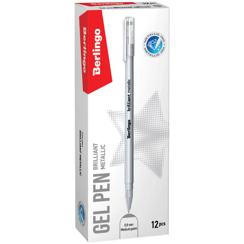 Ручка гелевая Berlingo Brilliant Metallic c серебристым цветом чернил и эффектом металлик будет по душе тем, кто ценит всё неординарное. Бархатистое покрытие soft-touch создаёт дополнительный комфорт при использовании. Цвет корпуса соответствует цвету чернил. Расширяя возможности для воплощения творческих задумок, производитель сделал ручку, подходящей для рисования и письма на чёрной бумаге. Диаметр пишущего узла 0,8 мм обеспечивает мягкость письма и насыщенность цвета