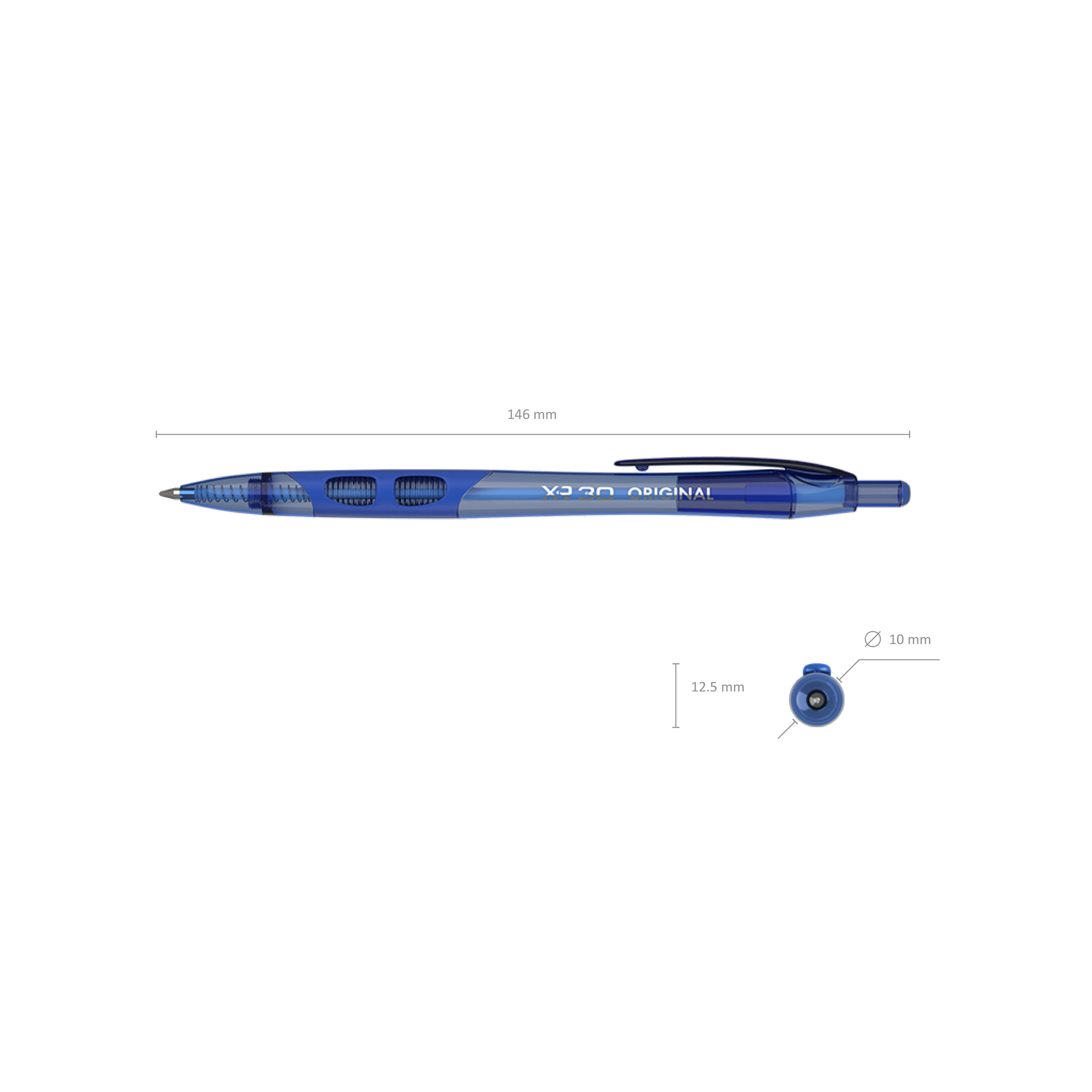 Автоматическая шариковая ручка Matic&Grip со стандартным типом пишущего узла и заменяемым стержнем. Ручка имеет круглый полупрозрачный корпус с эргономичной комбинированной грип-зоной из резины и профилированного пластика. Цвет корпуса, грип-зоны и клипа соответствует цвету чернил. 5-канальный пишущий узел с диаметром шарика 0.7 мм в сочетании с быстросохнущими чернилами обеспечивает мягкое и быстрое письмо. Длина непрерывной линии составляет 1000 м при толщине 0.35 мм, что является высоким показателем в своей категории. Модель XR-30 Original стала одним из бестселлеров в ассортименте автоматических ручек ErichKrause. Количество в упаковке: 12 штук.