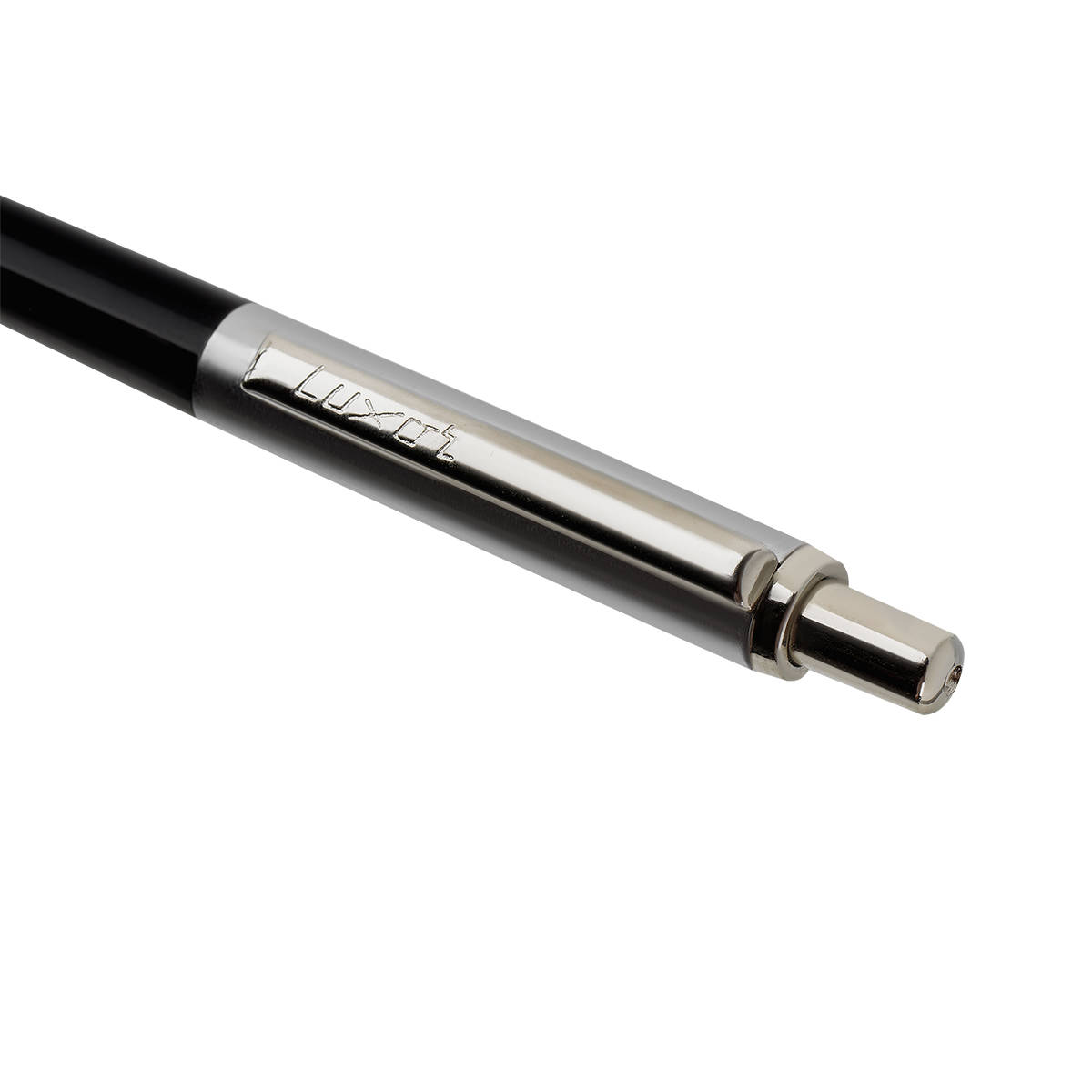 Шариковая ручка LUXOR STAR 1125 black в глянцевом корпусе из АБС-пластика, с хромированным колпачком и отделкой. Ручка оснащена стержнем Neotec. Упаковано в привлекательную подарочную презентацию. Цвет корпуса: черный. Цвет чернил: синий. Диаметр пишущего узла 1 мм. Толщина линии письма 0,8 мм. Длина сменного стержня 99 мм. Зона захвата- без резиного грипа.