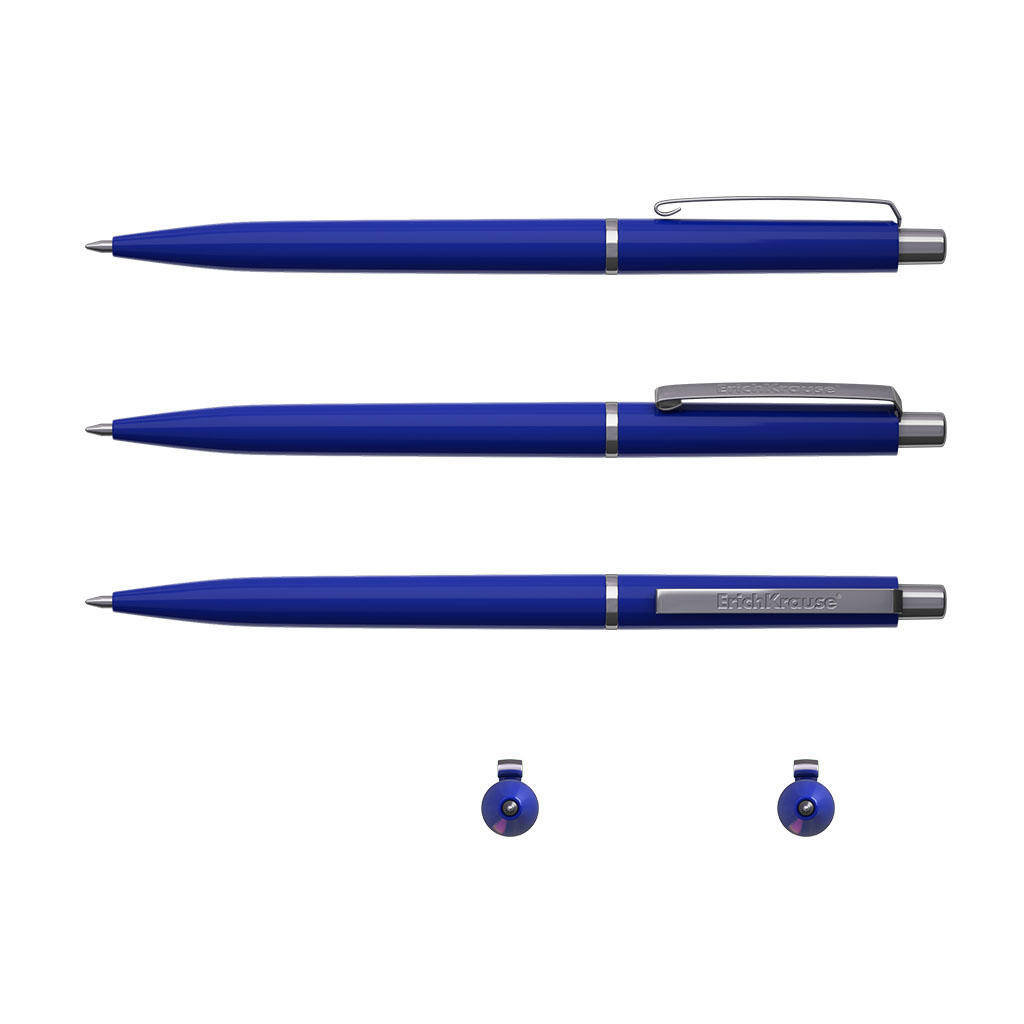 Классическая автоматическая шариковая ручка с металлическим клипом, стандартным типом пишущего узла и заменяемым стержнем. Ручка имеет непрозрачный глянцевый круглый корпус синего цвета. Цвет корпуса соответствует цвету чернил. 5-канальный пишущий узел с диаметром шарика 0.7 мм в сочетании с быстросохнущими чернилами обеспечивает мягкое и быстрое письмо. Длина непрерывной линии составляет 1000 м при толщине 0.35 мм, что является высоким показателем в своей категории. Количество в упаковке 12 штук.
